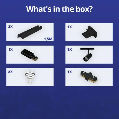 Bright Choice Komplettset 1-Phasen Rail 3 Meter Schwarz | incl. 8x Spot + GU10 2700K 3W Dimmbar + Abschlusskappe, Stromanschluss und I-Verbinder