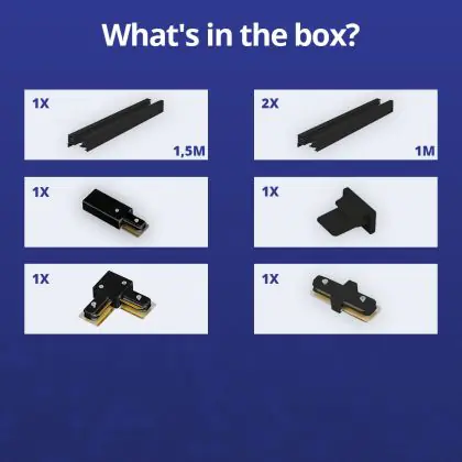 | Herstellername | Complete L shaped 1-Phase Track Set Black – 1,5 x 2 meter incl. End Cap, Power Connector and L -Con | |