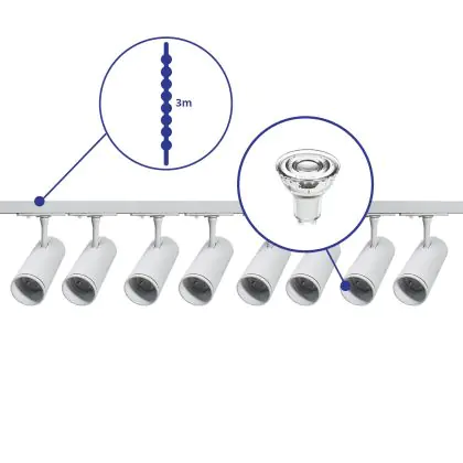 | Herstellername | Complete Straight 3-meter 1-Phase Track Set White incl. 8x Spot fixture + GU10 2700K 3W Dim – 2x 1.5 | |