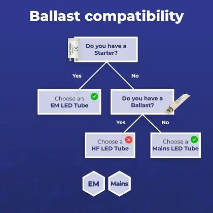 Falls eine “Tandemschaltung” (wie z.B. in einer Rasterleuchte mit 4x 18W / 60cm Röhren) umgerüstet werden soll, finden Sie hier die wichtigsten Informationen zur Auswahl der richtigen Röhre.