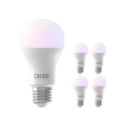 Mehrfachpackung 5x Calex Smart Tuya Wifi E27 Birne 8.5W 806lm - 822-840 Abstimmbares Weiß | RGBW - Dimmbar - Ersatz für 60W