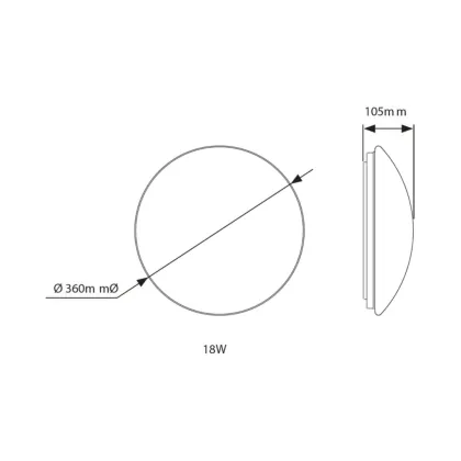 Description Hublot LED Blanc 18W 1561lm - 840 Blanc Froid | 360mm - IP44 - Éclairage De Secours 1 Heures
