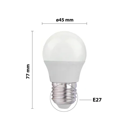 Description LED E27 Boule Dépolie 2.5W 250lm - 827 | Remplacement 25W