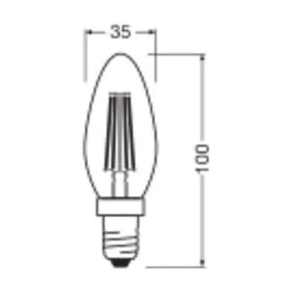 Description Ledvance Classic LED E14 Bougie Filament Claire 3.4W 470lm - 827 Blanc Très Chaud | Remplacement 40W