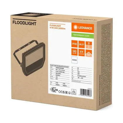 Le Ledvance Projecteur LED Aluminium Blanc 41W 6000lm 100D - 840 | IP66 - Symétrique permet une économie d’énergie importante tout en conservant une excellente qualité d’éclairage. Sa technologie LED Intégré lui permet également d’avoir une très longue durée de vie pouvant aller jusqu’à 100000 heures. Ce projecteur LED est étanche, avec son indice de protection IP66 – Résistant à la poussière et à l'eau (fortes projections) lui permettant d’être hermétique à la poussière et à l’eau. Disponible dans la couleur 4000K - Blanc Froid et un flux lumineux de 6000 Lm, ce projecteur LED est la solution idéale pour le remplacement de vos anciens projecteurs conventionnels.