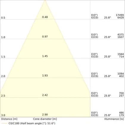• Angle de diffusion: 55 °