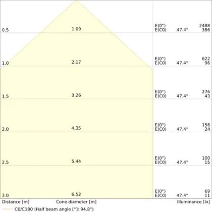 • Angle de diffusion: 95 °