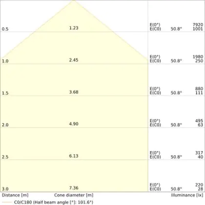 • Angle de diffusion: 100 °