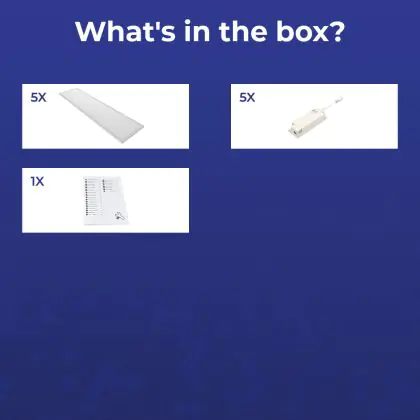 Les panneaux LED sont des solutions éco-énergétiques permettant de remplacer les panneaux classiques équipés de tubes fluorescents. Ce panneau Lot 5x Dalle LED Eco V4.0 28W 3360lm CCT | 300X1200 UGR est conçu pour remplacer une dalle classique de 2x36. La consommation de ce panneau LED est considérablement plus faible qu’un panneau classique, à savoir, seulement 28 watts. Une économie d’énergie sans compromettre la qualité de la lumière. Le flux lumineux est de 3360 lumens. La lumière de ce panneau LED est diffusé à degrés et offre un bon rendu des couleurs. La durée de vie moyenne de ce panneau LED est de 70000 heures.