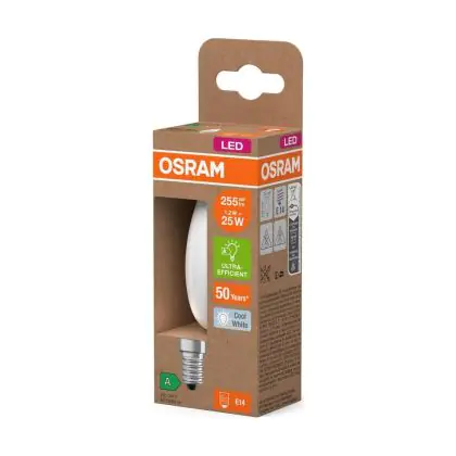 Description Osram LED Classic E14 Bougie Filament Dépolie 1.2W 255lm - 840 | Remplacement 25W
