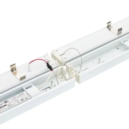 La réglette LED, Philips Réglette LED CoreLine Blanc 45.5W 6400lm - 830-840 CCT | 150cm - Dimmable, Dali - Remplacement 2x36W est conçue pour remplacer les réglettes TL-D traditionnelles et permettant d’économiser jusqu’à 50% d’énergie. Très souvent utilisé pour l’éclairage d’entrepôts, d’usines, de parking et d’autres grands espaces extérieurs. Très simple d’installation, cette réglette de peut se fixer au plafond et au mur et projette 3000K - 4000K CCT, comme couleur de lumière. La Philips Réglette LED CoreLine Blanc 45.5W 6400lm - 830-840 CCT | 150cm - Dimmable, Dali - Remplacement 2x36W dispose d’un indice de protection IP20 – Quasi-résistant à la poussière à l’eau et la poussière et d’une résistance aux chocs IK04.